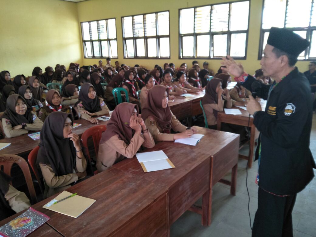 Rusman Efendi. SH.MH, saat memberkan penyuluhan terhadap murid SMP tentang Bahayanya Narkoba.