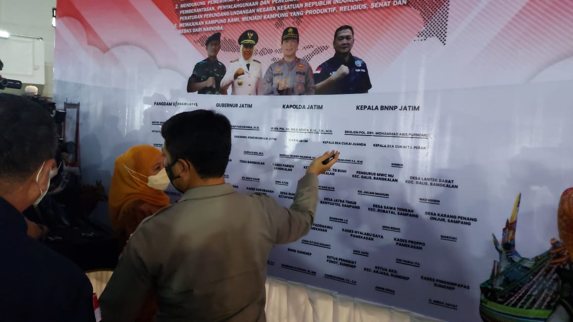 Dalam kegiatan masyarakat dari berbagai elemen strategis dan Forkopimda Jatim serta Forkopimda Madura Raya melakukan pembacaan serta penandatanganan Deklarasi Madura produktif tanpa Narkoba.