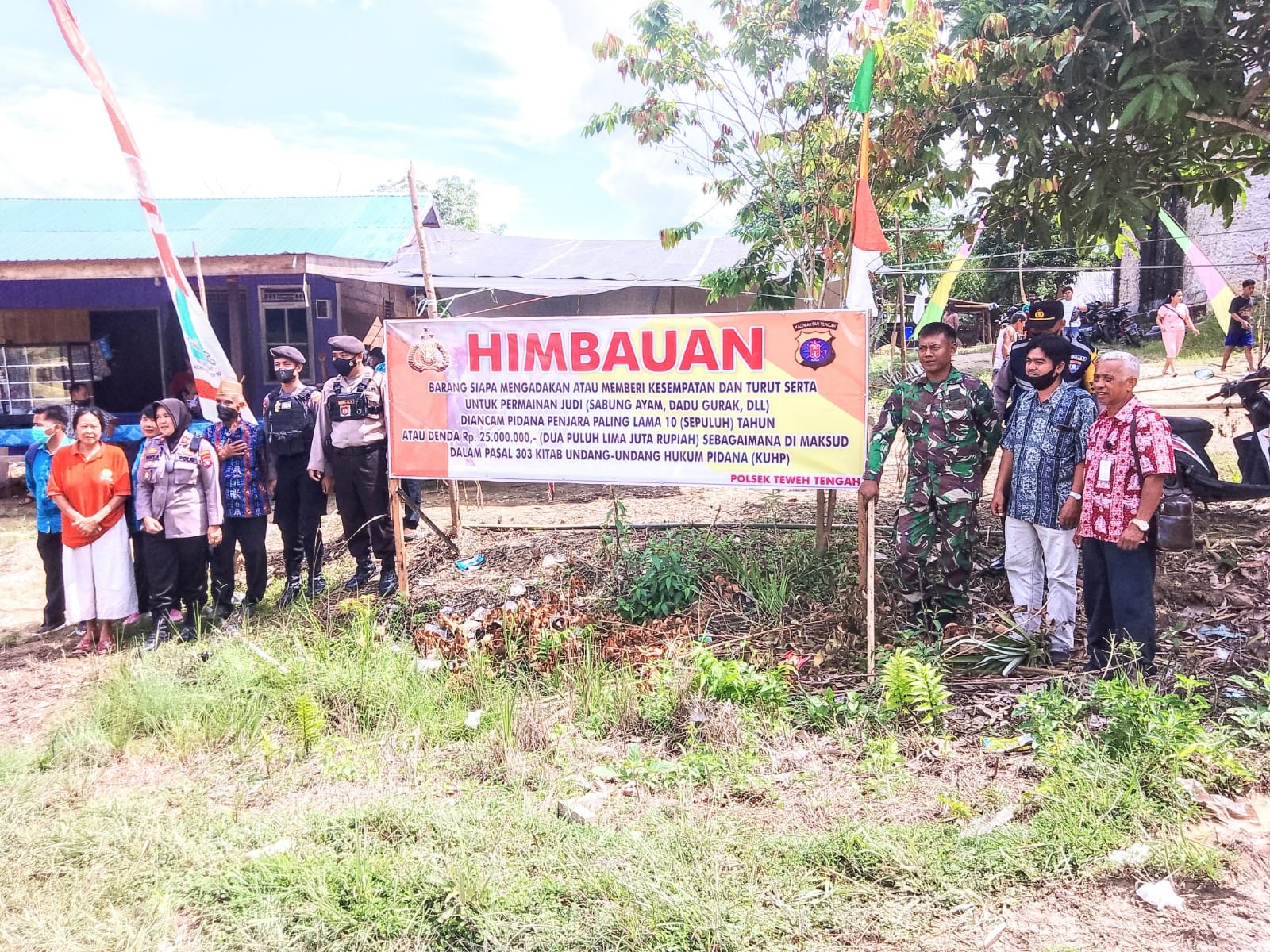 ” Usai pemasangan spanduk berupa” HIMBAUAN ” di tempat acara ritual wara, Kapolsek Teweh Tengah Kompol Reny Arafah kembali tegaskan tidak ada permainan judi Dadu Gurak dan saung ayam yang menggunakan taruhan uang di dalam acara ritual wara,” tutupnya Kapolsek Teweh Tengah.(Tony,S.Pd)