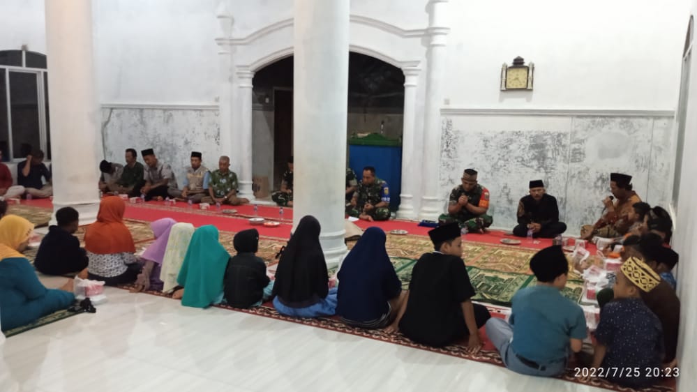 DANDIM 0421/LS Letkol Inf Fajar Akhirudin Laksanakan doa bersama serta santuni anak yatim/piatu di sela waktu dalam rangka menjalankan tugas kegiatan TMMD ( Tentara Manunggal Membangun Desa ) ke 114 di Desa Babakan Loa Kecamatan Kedondong Kabupaten Pesawaran Provinsi Lampung. Senin (24/7/2022).