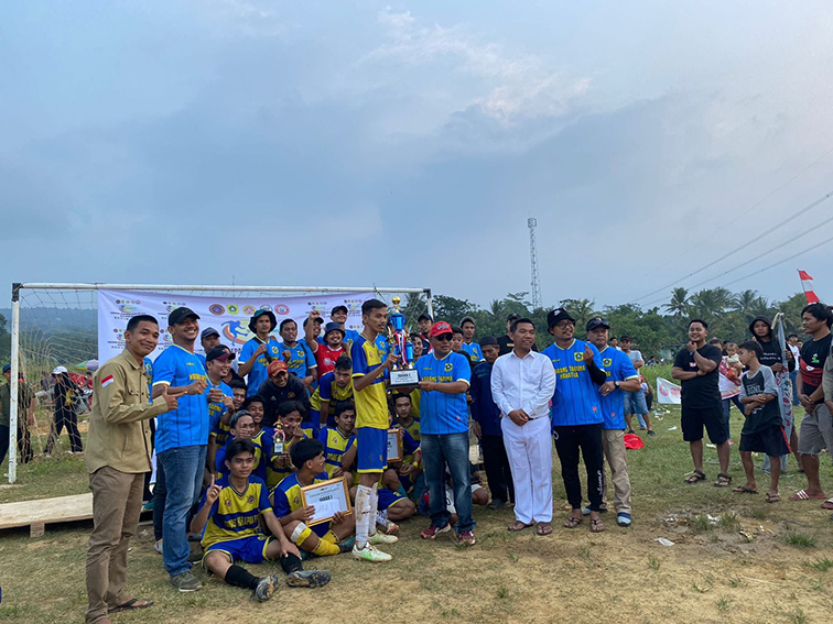 Kepala Desa Pasir Mukti Kamaludin Berikan Piala Kades Cup 2022 Ke Para Juara.