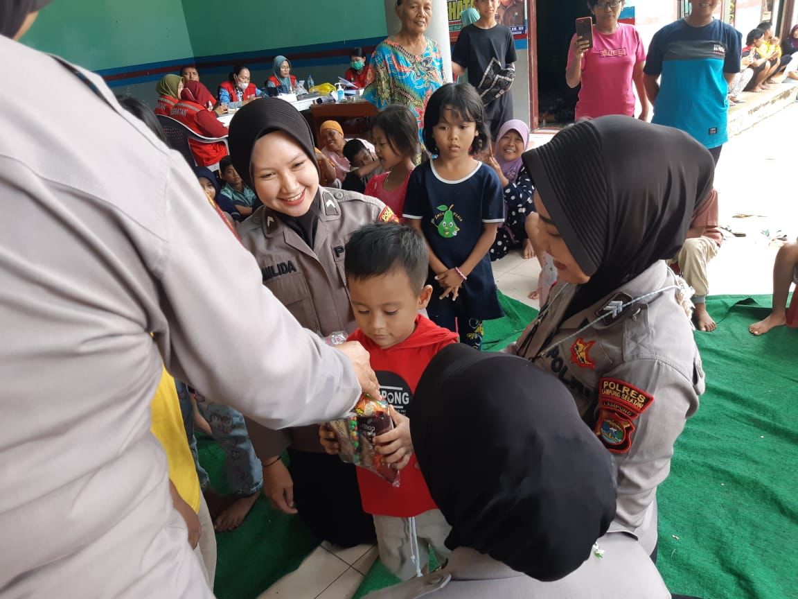 Kasidokkes Polres Lampung Selatan bersama Polwan dari berbagai satuan fungsi ini dikerahkan untuk membantu pada posko bencana alam di Desa Beringin Kencana.