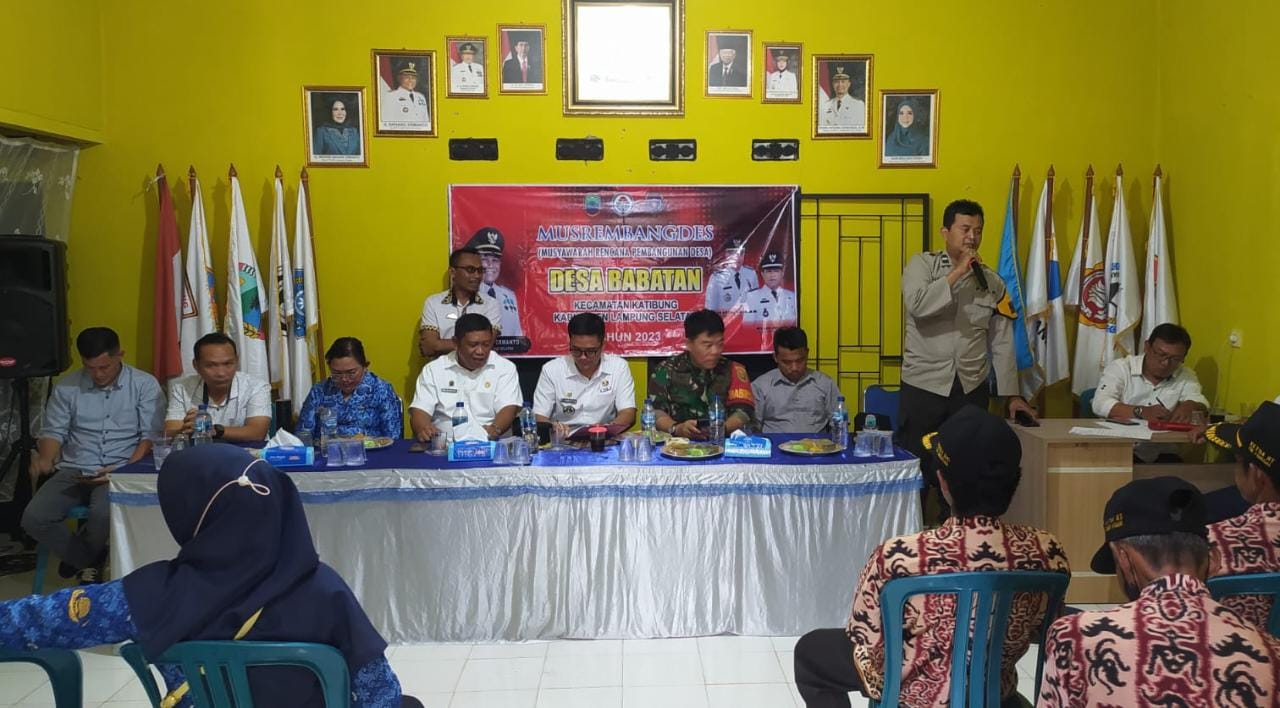 Agenda Tahunan Desa babatan lakukan Musawarah anggaran pembangunan tahun 2023 dalam giat ini juga dihadiri oleh; Camat Katibung Firdaus Adam. S,STP, M.M, Kepala Desa Babatan Mislan Irfandi, Pendamping Desa, Kepala UPTD Kesehatan,Kepala UPTD Pertanian, Kepala UPTD PU PR ,ketua BPD dan anggota, LPM dan anggota, Kepala Dusun, RT se Desa Babatan, Tokoh Masyarakat, Babinsa Danramil katibung, Babin Kamtibmas Polsek Katibung, ibuk ibuk PKK Desa Babatan, Kader posyandu,Pendamping PKH.