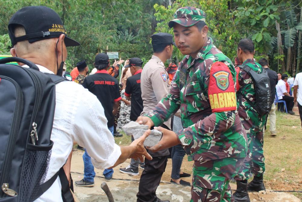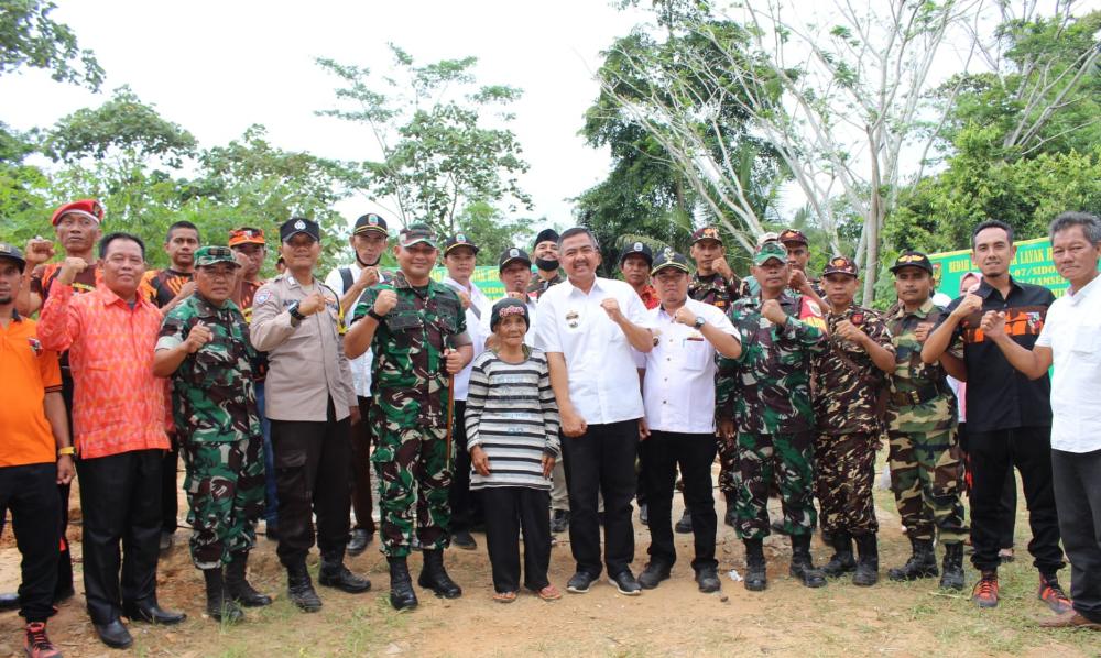 Dandim 0421/LS, Letkol Inf Fajar Akhirudin SIP.M.SI, lakukan peletakkan batu pertama bedah mumah Ibu bunek Di Desa Bandar Dalam kecamatan Sidomulyo lampung selatan.