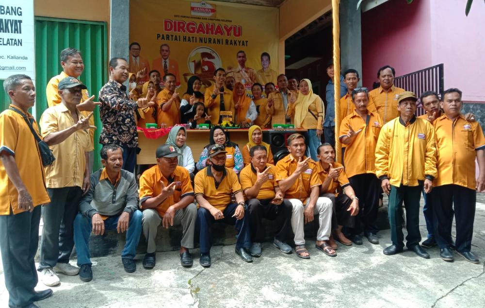 Lampung Selatan,– Dewan Pimpinan Cabang (DPC) Lampung Selatan Partai Hati Nurani Rakyat (HANURA) menggelar perayaan Hari Ulang Tahun (HUT) ke-16 dikantor Sekretariat yang berlokasi di aera Komplek Pemda Lamsel Kamis,(22/12/22).