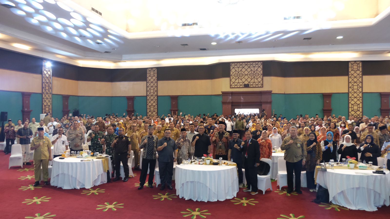 CIBINONG- Plt. Bupati Bogor Iwan Setiawan bersama jajaran Pemkab Bogor, Forum Koordinasi Pimpinan Daerah (Forkopimda) serta camat se-Kabupaten Bogor gelar Musyawarah Rencana Pembangunan (Musrenbang) Rencana Kerja Pembangunan Daerah (RKPD) tahun 2024 tingkat Kabupaten Bogor yang berlangsung di Gedung Tegar Beriman, Senin (20/3/23).
