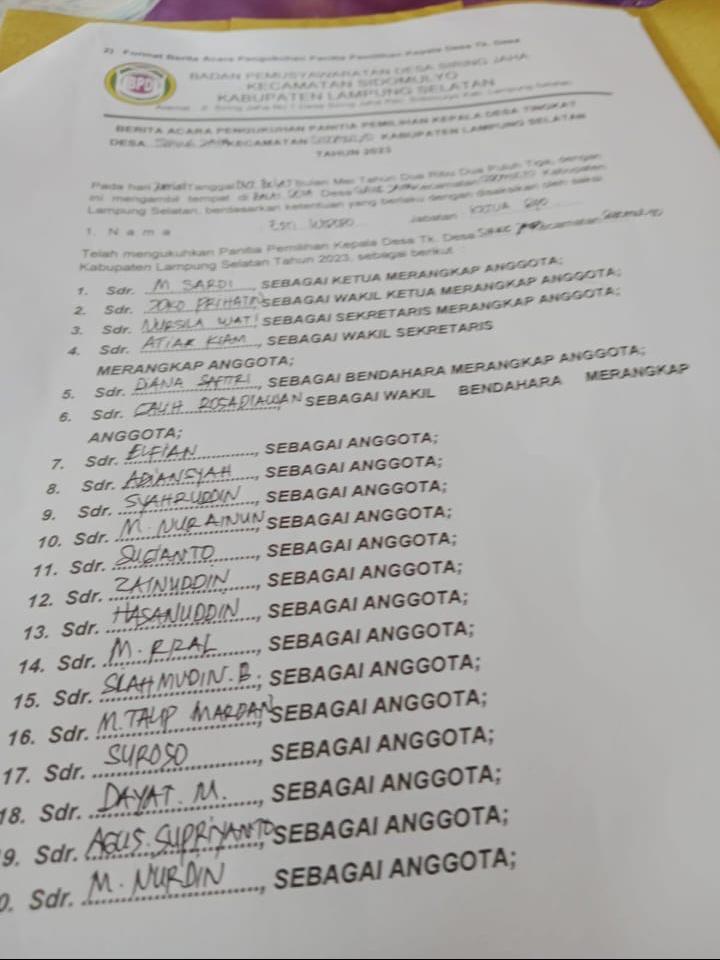 Empat belas yang lain nya adalah sebagai Anggota kepanitiaan pemilihan kepala desa (Pilkades) di Desa Siring Jaha kecamatan Sidomulyo lampung selatan, Jum,at,(12/05).
