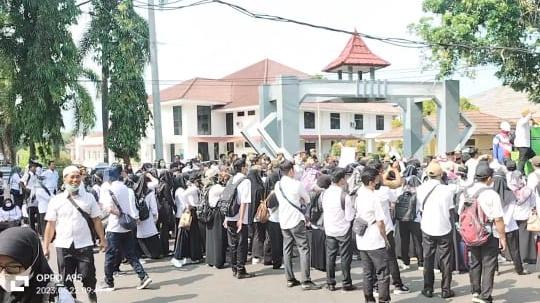 poto pendemo ratusan Guru Honorer Lulus Passing Grade (GLPG-PPPK) 2022.Ā di kantor DPRD Lamsel.