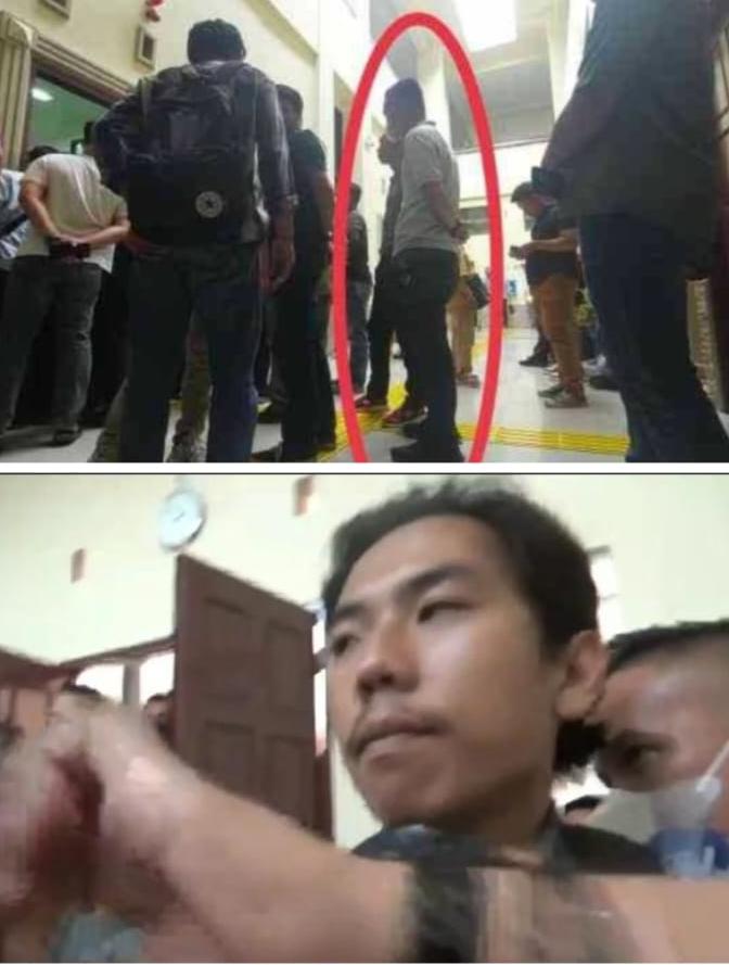 Kedua pria itu kemudian memegangi kedua tangan Diyon dan melarang merekam gambar serta meminta dirinya untuk berduel di luar gedung persidangan.