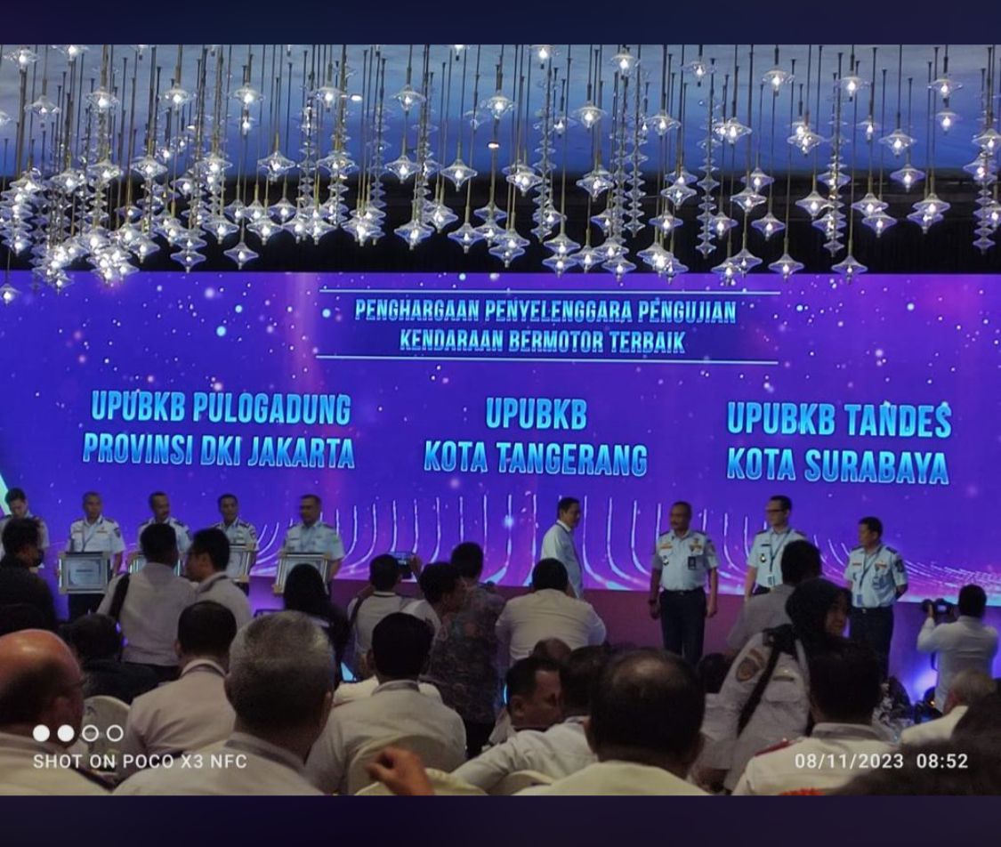 Jakarta – Unit Pengelola Pengujian Kendaraan Bermotor (UP PKB) Pulogadung mendapatkan penghargaan sebagai Penyelenggara Pengujian Kendaraan Bermotor Terbaik I yang diberikan oleh Kementerian Perhubungan. Acara pemberian penghargaan dilaksanakan di Mason Pine Hotel, Bandung, Rabu (8/11/2023).