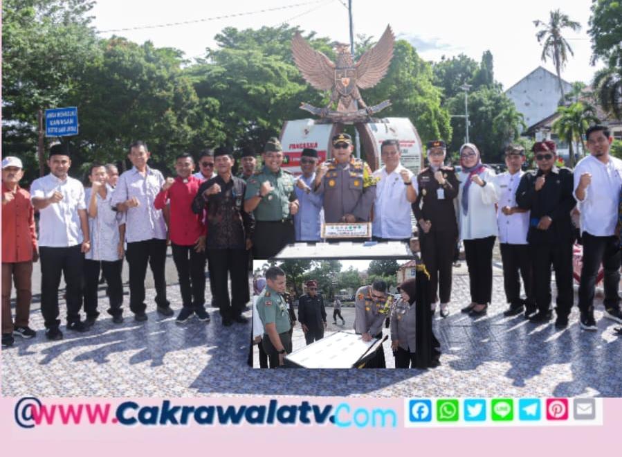 Kegiatan ini diakhiri dengan penandaan sebuah prasasti dengan menggunakan tanda telapak tangan kanan para pejabat forkopimda dan tokoh agama, tokoh masyarakat di hadapan tugu Pancasila Kelurahan Way Urang Kalianda Lamsel.