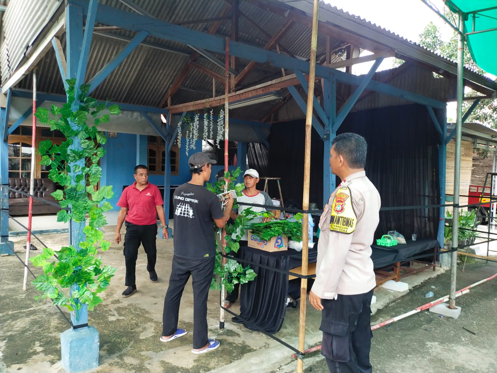 Bhabinkamtibmas Aiptu Henry Marpaung pada saat patroli dan kunjungan/DDS, melihat antusias warga binaanya bersama petugas TPS, sibuk membangun TPS yang akan di gunakan untuk tempat pemungutan suara.
