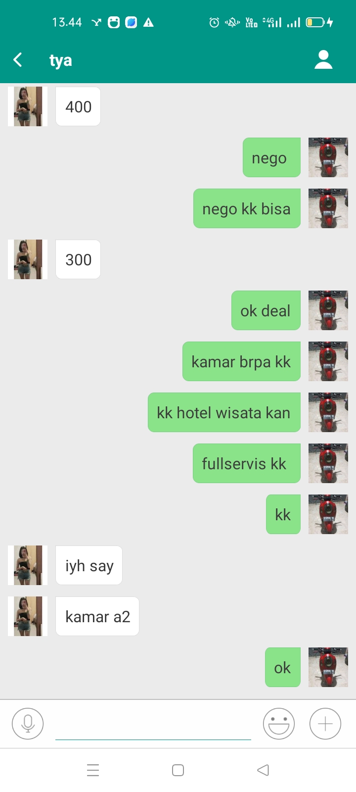 Saat mengirim pesan, salah satu akun berinisial (TA) merespon dalam waktu kurang dari dua menit. Ia menawarkan ‘Booking ST ( short time) 300 1x main full service ‘di salah satu penginapan Wisma Panangga, untuk pembayaran dilakukan setelah selesai berkencan.