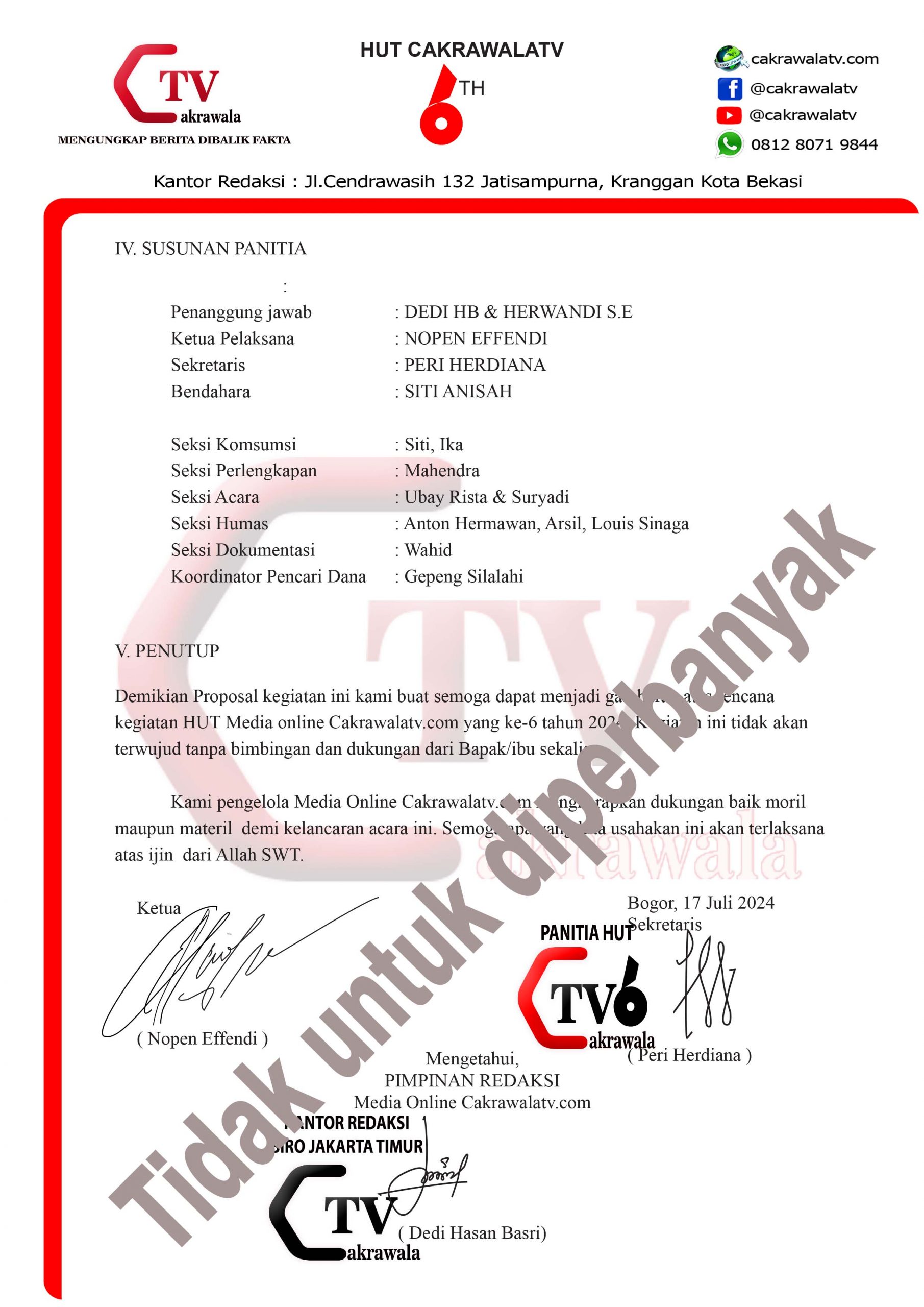 Pengelola Media Cakrawala TV , Dalam waktu dekat Akan menggelar HUT CAKRAWALA TV Ke-6 Tahun 2024