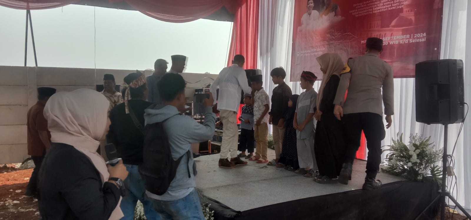 Acang Suryana dan Randi Maulana menggelar acara tasyakuran dan santunan untuk anak yatim piatu dan duafa di lingkungan Desa Gunung putri, Kecamatan Gunung Putri, Kabupaten Bogor, Jawa Barat, pada Minggu 1 September 2024. Acara tersebut berlangsung di lapangan PT Ferry Sonneville dan diawali dengan doa bersama yang dipimpin oleh Ustaz Faisal.