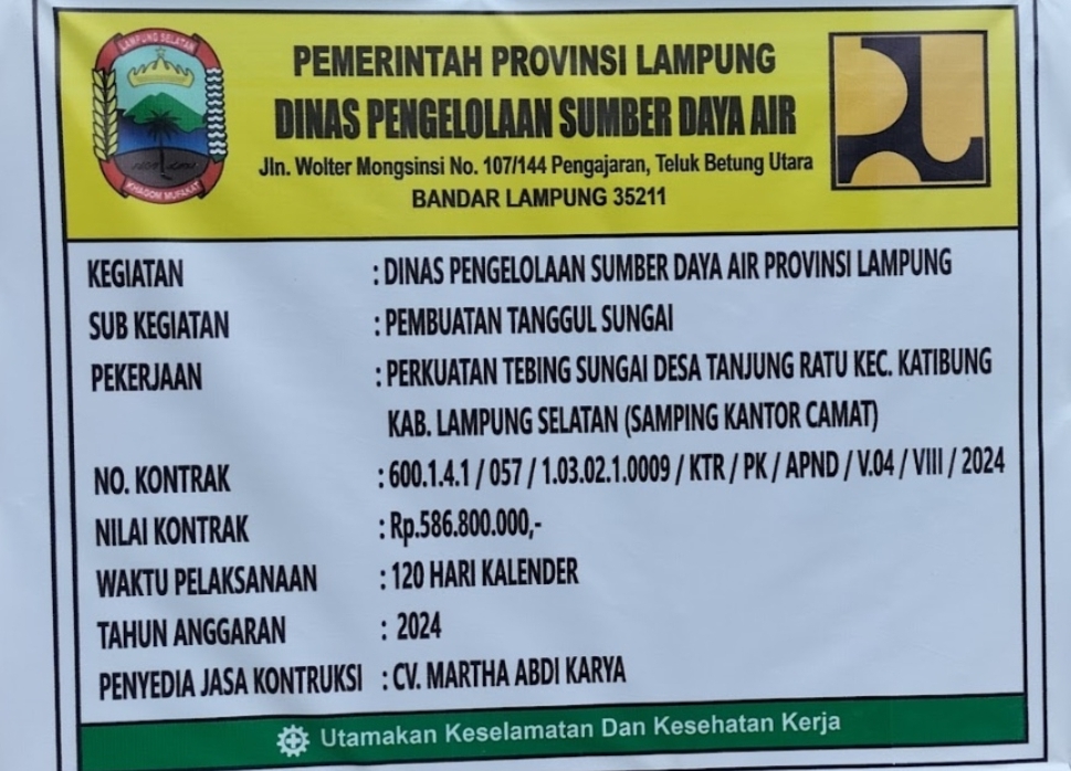 Lampung,- Hari ini rabu pada tanggal 19 Januari 2025 pukul 10.12.wib, Warga Perumahan Ratu Mutiara Indah di Desa Tanjung Ratu, Kecamatan Katibung Lampung selatan dengan “Resmi melaporkan pekerjaan Dinas Sumber Daya Air Provinsi Lampung yang dikerjakan oleh CV Martha Abdi Karya ke Kejaksaan Tinggi (Kejati) Lampung. terkait pembuatan tanggul sungai tidak sesuai dengan SOP/Spek dikerjakan Asal Asalan.