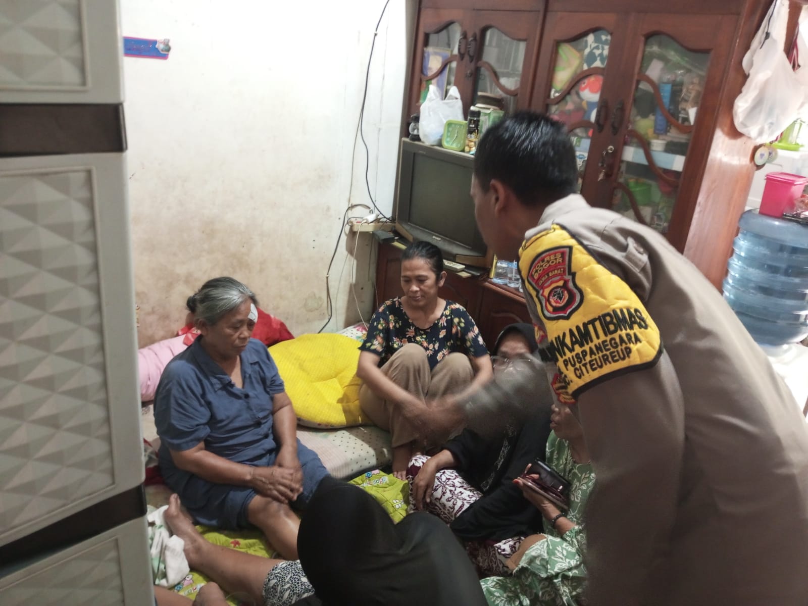 Polres Bogor, Bhabinkamtibmas Kelurahan Puspa Negara Polsek Citeureup Polres Bogor Polda Jabar Aiptu M.Ashari telah melaksanakan tugas Pelayanan Publik melalui kegiatan Memgunjungi sekaligus menjenguk salah satu korban yang baru datang dari Pandeglang dimana menjadi korban kecelakaan Bus di Kelurahan Puspa Negara, Senin (12/05/2025).
