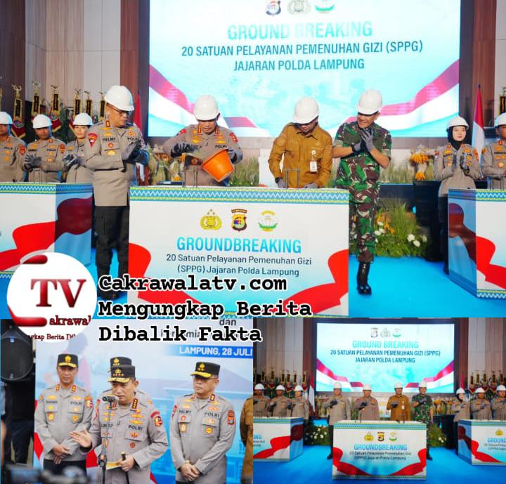 LAMPUNG,CTV.COM, – Kapolri Jenderal Listyo Sigit Prabowo melaksanakan Groundbreaking 20 Satuan Pelayanan Pemenuhan Gizi (SPPG) jajaran Polda Lampung, Senin (28/7/2025). Kegiatan ini merupakan komitmen dari Polri dalam mendukung program Makan Bergizi Gratis (MBG).