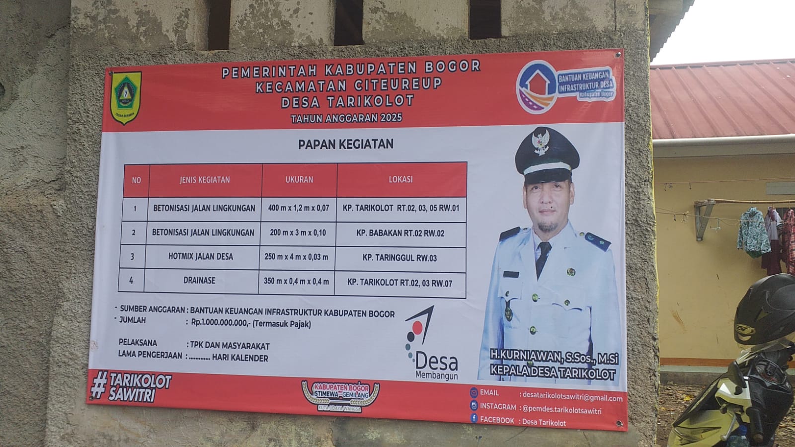Bogor – Pemerintah Desa Tarikolot, Kecamatan Citeureup, Kabupaten Bogor, mulai merealisasikan program pembangunan infrastruktur melalui Bantuan Keuangan Infrastruktur Kabupaten Bogor Tahun Anggaran 2025.
