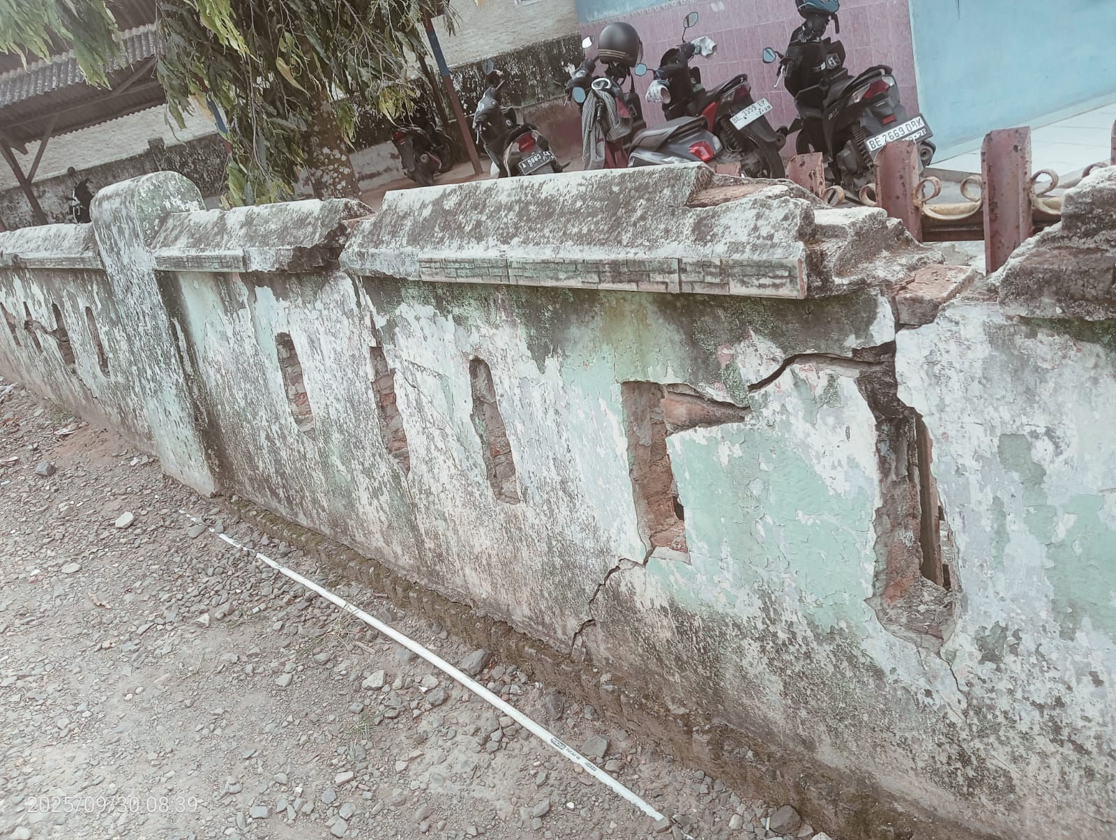 Katibung – Kondisi tembok pagar SDN 4 Pardasuka, Kecamatan Katibung, Lampung Selatan, kini sangat memprihatinkan. Bagian pagar sekolah terlihat miring dan nyaris roboh, sehingga membahayakan keamanan siswa saat beraktivitas di lingkungan sekolah.