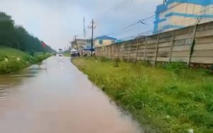 Lampung Selatan, Cakrawala Tv– Drainase pembuangan air milik PT Haida Biotechnology Indonesia yg beralamat di Desa Serdang kecamatan Tanjung Bintang Lampung Selatan Diduga menjadi penyebab terjadinya genangan air di jalan raya hingga menimbulkan banjir di sekitar lokasi. Akibatnya, para pengguna jalan mengeluhkan kondisi tersebut karena jalan menjadi licin dan sulit dilalui saat hujan deras.