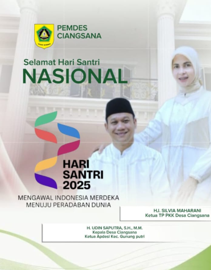 Bogor, Cakrawala Tv-Dalam rangka memperingati Hari Santri Nasional 2025, Pemerintah Desa Ciangsana, Kecamatan Gunung Putri, Kabupaten Bogor, menyampaikan ucapan selamat kepada seluruh santri di Indonesia.
