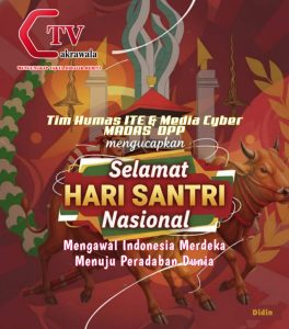 Hari ini, seluruh Indonesia merayakan Hari Santri Nasional yang jatuh pada tanggal 22 Oktober 2025. Momentum ini merupakan kesempatan bagi seluruh elemen bangsa untuk mengenang dan mengapresiasi peran besar para santri dalam sejarah perjuangan dan pembangunan Indonesia. Tidak hanya sebagai bagian dari sejarah kemerdekaan, para santri juga terus berkontribusi dalam berbagai bidang, mulai dari pendidikan, sosial, budaya, hingga ekonomi. Pada kesempatan ini, Bang Didin Sebagai Humas ITE & Media Cyber Madas DPP turut menyampaikan ucapan selamat Hari Santri Nasional 2025, sebagai wujud penghargaan atas dedikasi dan kontribusi para santri bagi kemajuan bangsa.