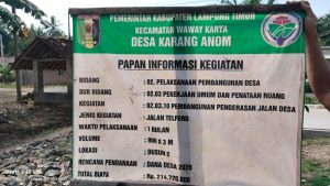Lampung Timur, www.Cakrawalatv.com- Pembangunan proyek onderlah pengeras jalan yang bersumber dari Anggaran Dana Desa (DD) Tahun 2025 di Desa Karang Anom Kecamatan Waway karya diduga dikerjakan asal jadi. Hingga saat ini, proyek tersebut belum juga terselesaikan meskipun anggaran telah dialokasikan.
