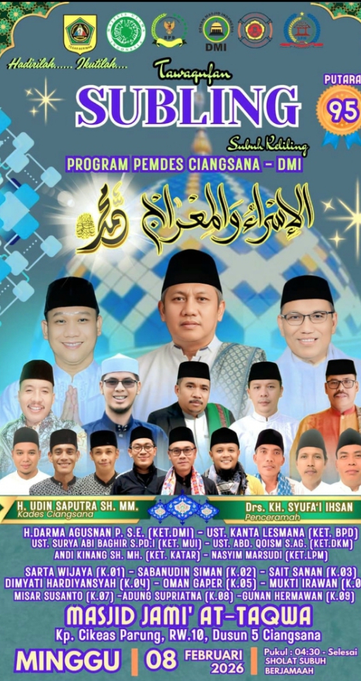 Kepala Desa Ciangsana, H. Udin Saputra, menyampaikan bahwa kegiatan Subling merupakan salah satu upaya memperkuat ukhuwah Islamiyah sekaligus meningkatkan kesadaran masyarakat untuk memakmurkan masjid melalui salat berjamaah dan kegiatan keagamaan lainnya. Ia berharap program ini terus berlanjut dan semakin meningkatkan semangat kebersamaan serta nilai-nilai religius di tengah masyarakat Desa Ciangsana.