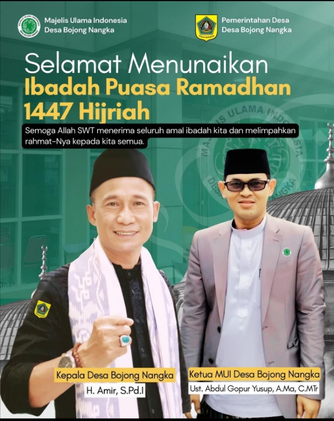 Bogor, www.Cakrawalatv.com- Menyambut datangnya bulan suci Ramadan 1447 Hijriah, Pemerintah Desa Bojong Nangka bersama Majelis Ulama Indonesia (MUI) Desa Bojong Nangka menyampaikan ucapan selamat menunaikan ibadah puasa kepada seluruh masyarakat.