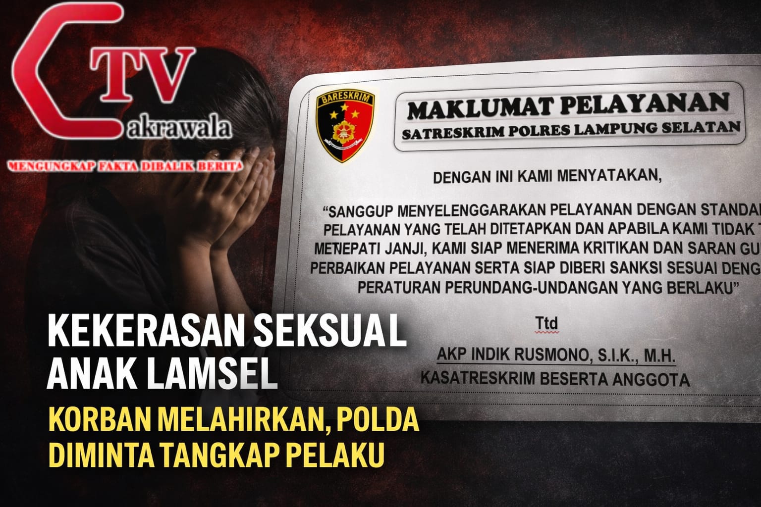 Lampung Selatan, www.Cakrawalatv.com- Kasus kekerasan seksual anak Lamsel kembali mengguncang nurani masyarakat. Seorang anak perempuan di Kabupaten Lampung Selatan harus menanggung penderitaan berat setelah diduga menjadi korban kekerasan seksual hingga akhirnya melahirkan seorang bayi.