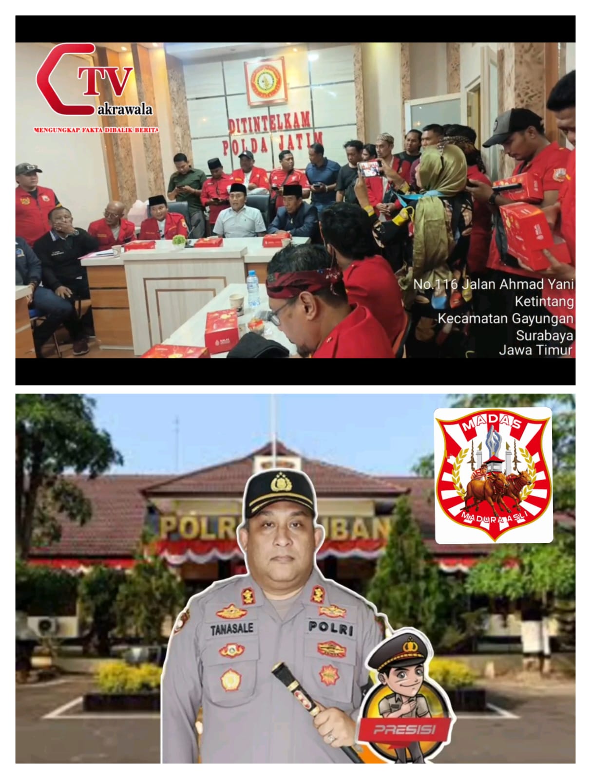 Surabaya, www.Cakrawalatv.com- 500 anggota dan pengurus ormas MADAS SEDARAH menggruduk Mapolda Jatim, orasi menyuarakan pencopotan Kapolres Tuban AKBP. Williem Tanasale,S.I.K., Kasat Reskrim dan Kanit Jatanras Polres Tuban terkait adanya dugaan…