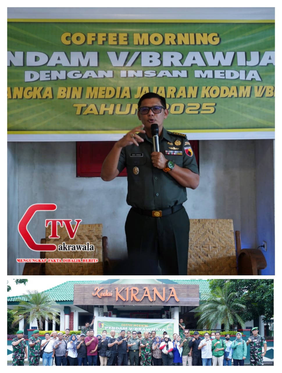 Surabaya, www.Cakrawalatv.com- Kapendam V/Brawijaya Kolonel Inf Herbeth Andi Amino Sinaga, S.I.P., memimpin kegiatan Coffee Morning bersama insan media dalam rangka pembinaan media jajaran Kodam V/Brawijaya, bertempat di Kedai Kirana Makodam…